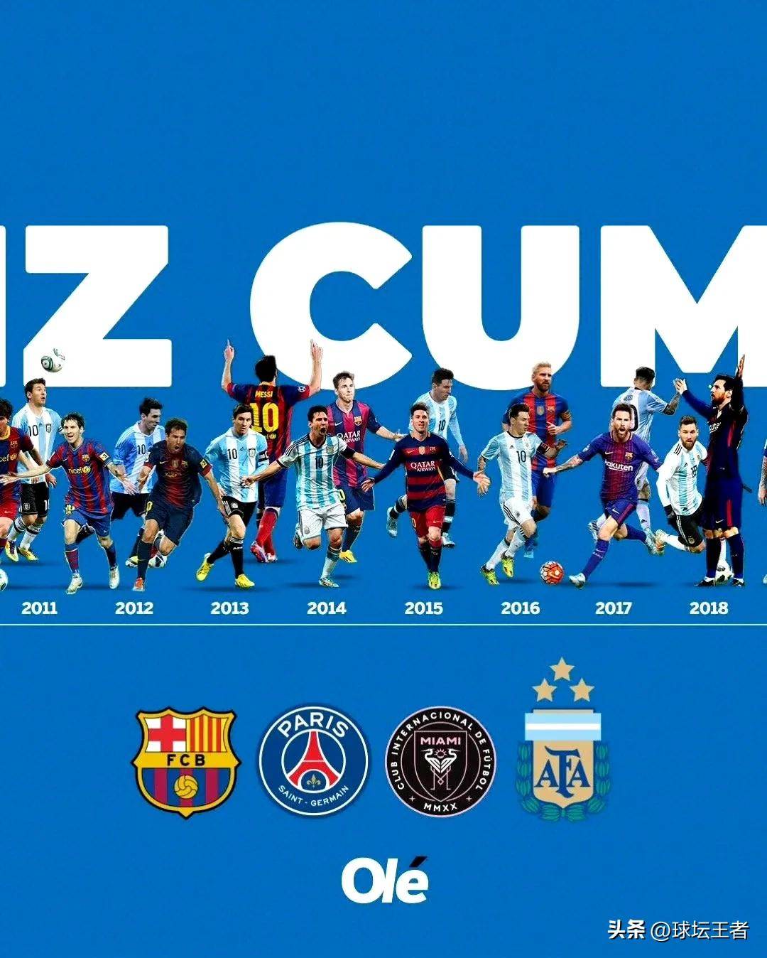 《法国足球》杂志则以梅西获得金球奖的年份(2009, 2010, 2011, 2012, 2015, 2019, 2021, 2023)作为祝福,并用别出心裁的“Lionel M8SSI”表达了创意和敬意。